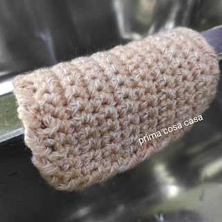 Tutaj zrobiłam i połączyłam dwa rzędy kwadratów babuni, zebrałam wszystko jak najściślej robiąc płaską górę, do tego dodałam mini-daszek: dwa dodatkowe rządki plus jedno okrążenie raczkiem.